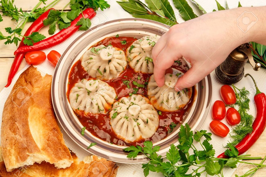 Khinkali, varianta georgiană, se consumă la cină, inclusiv la petreceri, pentru că pot fi apucate de moț și sunt foarte gustoase. Pe lângă umplutură, în interior se formează un pic de supă din lichidul de la carne, care le dă o savoare aparte.
