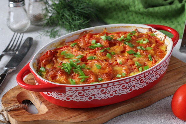 O mâncare ușoară, pe care o pot consuma și copiii dacă fierbi carnea în loc să o prăjești! Ingredientele sunt pentru 4 porții. Timp de preparare: 55 de minute.